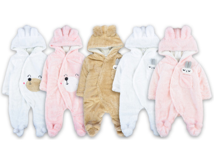 Plyšový kojenecký overal, na zip, růžová, modrá, žlutá