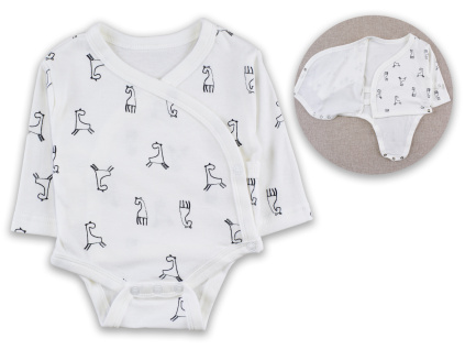 Bavlněné zavinovací body s dlouhým rukávem a motivem žirafek