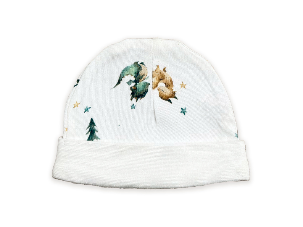 Měkoučká novorozenecká čepička ze 100% bavlny s obvodem cca 30 cm, ideální pro čerstvě narozená miminka. Pohodlný střih se jemně přizpůsobí hlavičce, nikde netlačí a zajišťuje příjemné teplo. Roztomilý dračí motiv dodává pohádkový vzhled pro malé snílky a dobrodruhy. 🐉✨