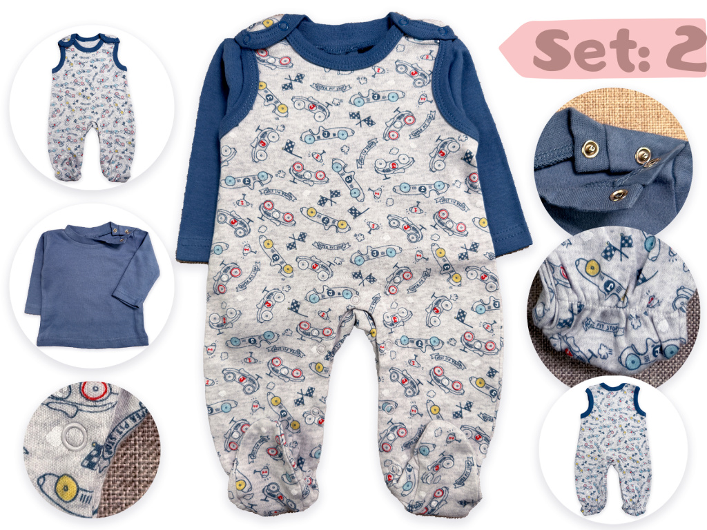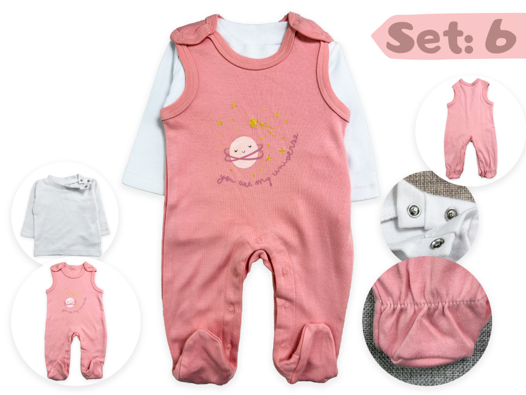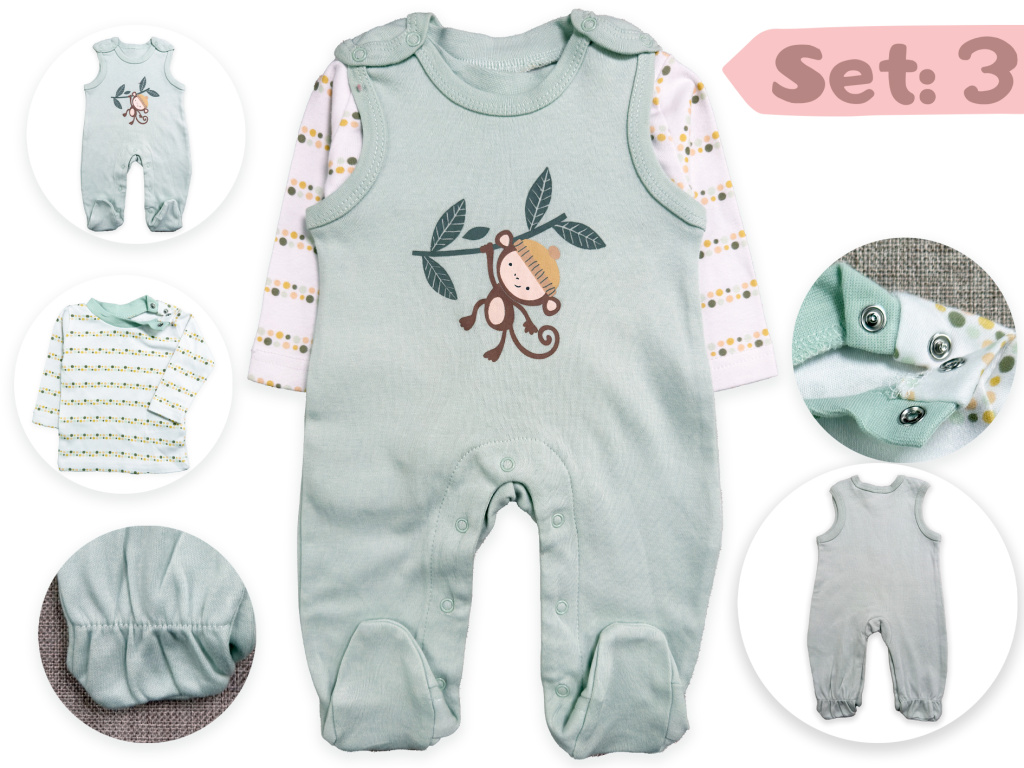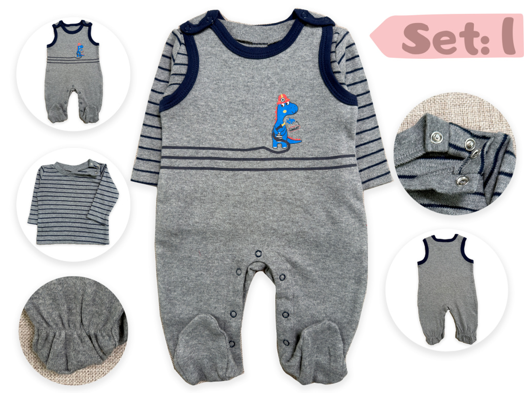 Set je vhodný na doma i ven, jako každodenní outfit nebo jako základní oblečení pro miminko. Díky jednoduchému střihu a nadčasovým motivům se jednotlivé sety snadno kombinují s dalšími kousky dětského šatníku.