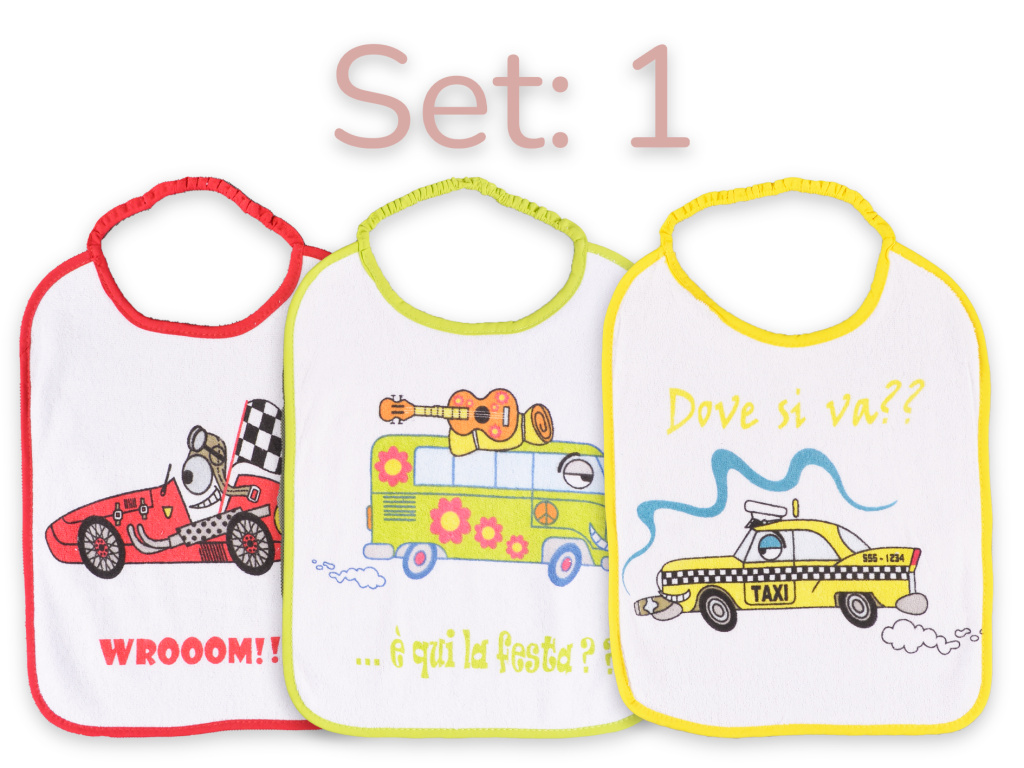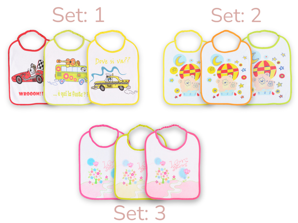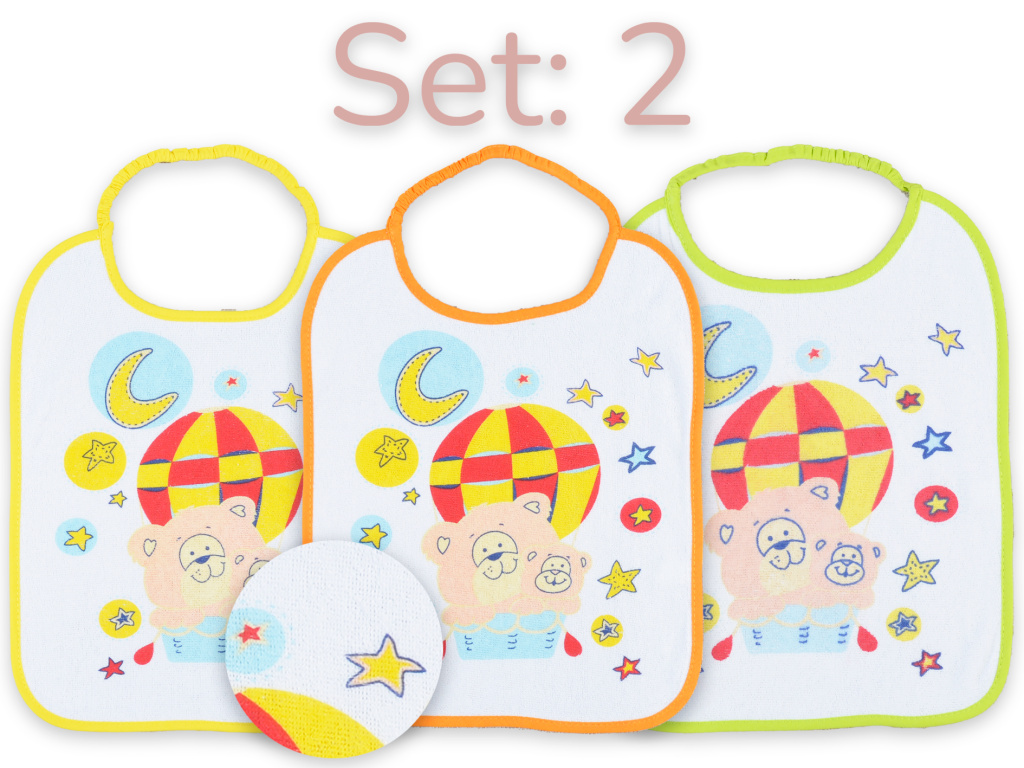 Praktické balení 3 bavlněných froté bryndáků na gumičku ve velikosti 36 × 27 cm. Každý má barevný a roztomilý potisk. Díky větší ploše jsou ideální pro starší miminka nebo když chcete ochránit více oblečení. Rychlé doručení.