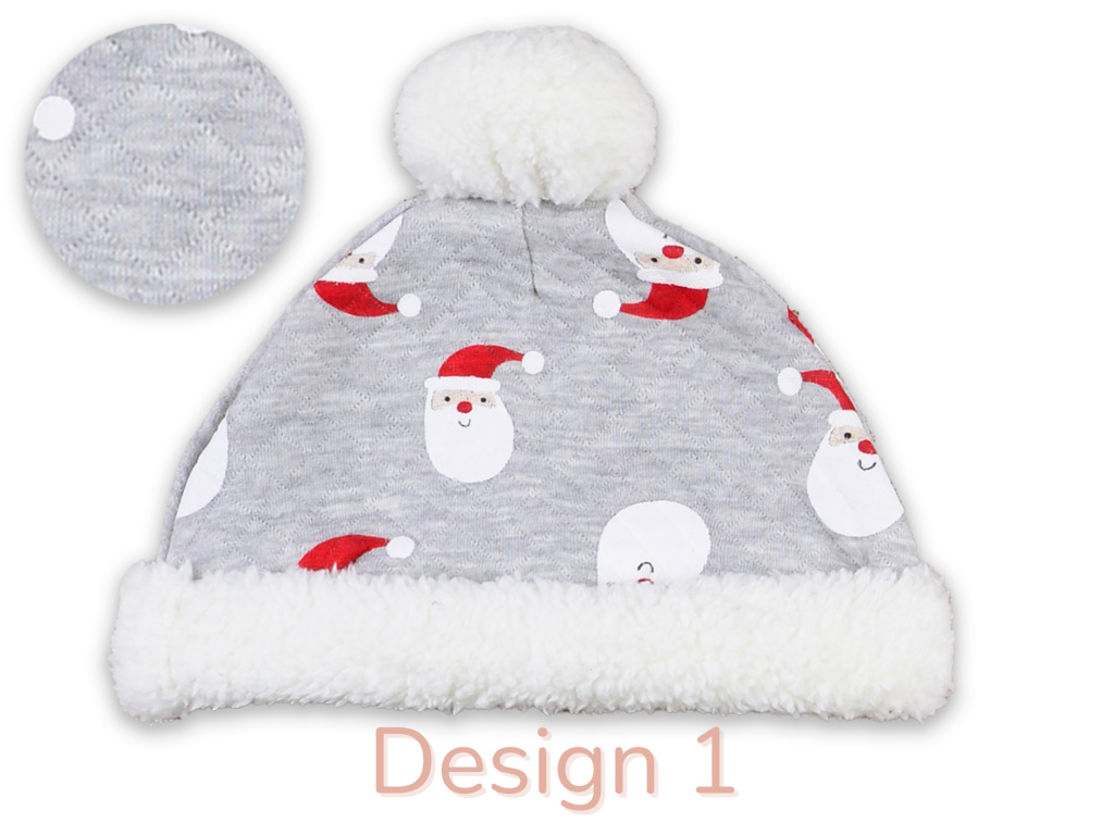 Roztomilá zimní čepička s bambulkou a vánočním potiskem. Obvod cca 40 cm, materiál je lehce pružný, takže se čepička krásně přizpůsobí dětské hlavičce. Měkká fleecová podšívka zajistí teplo i v mrazivých dnech.