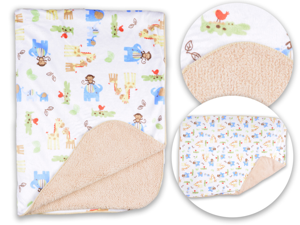 Dětská deka o rozměru 75x100 cm. Vnější strana má roztomilý potisk se zvířátky a je vyrobeno z mikroplyše. Vnitřní strana je z teplého beránku. Deka je ideální na doma i na cestování. Příjemně zahřeje a má všestranné využití. Rychlé doručení.