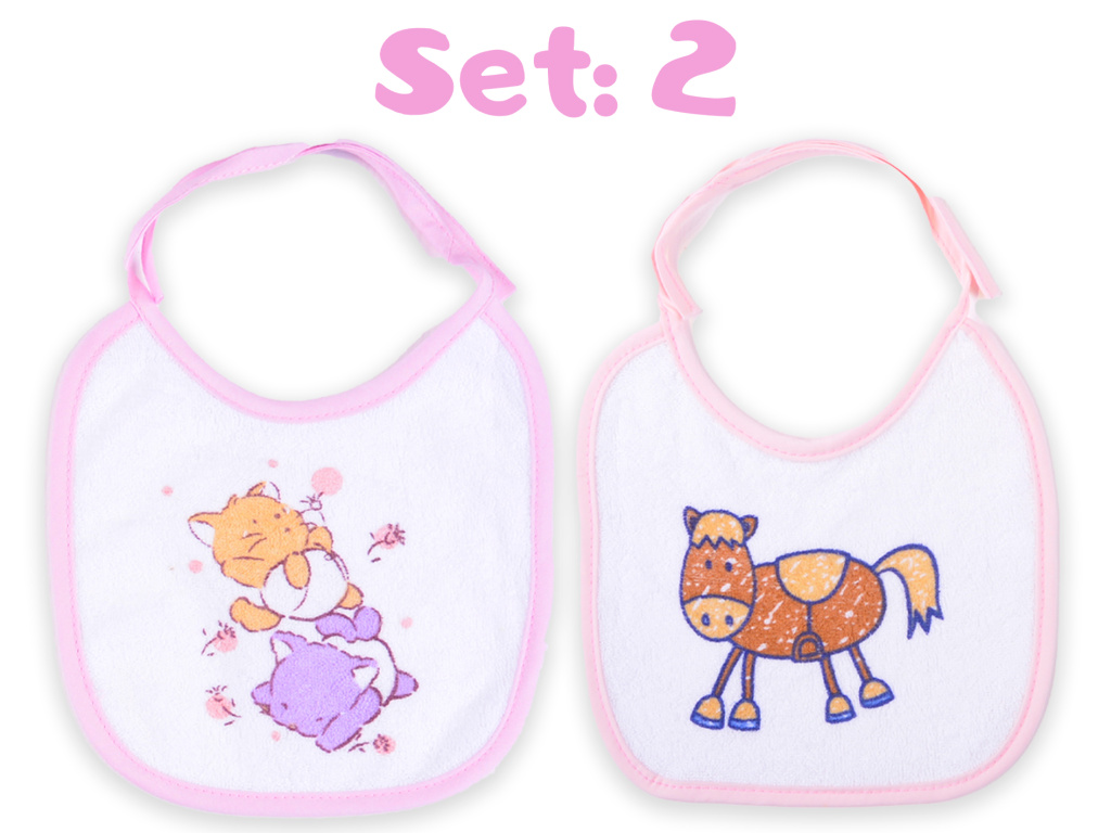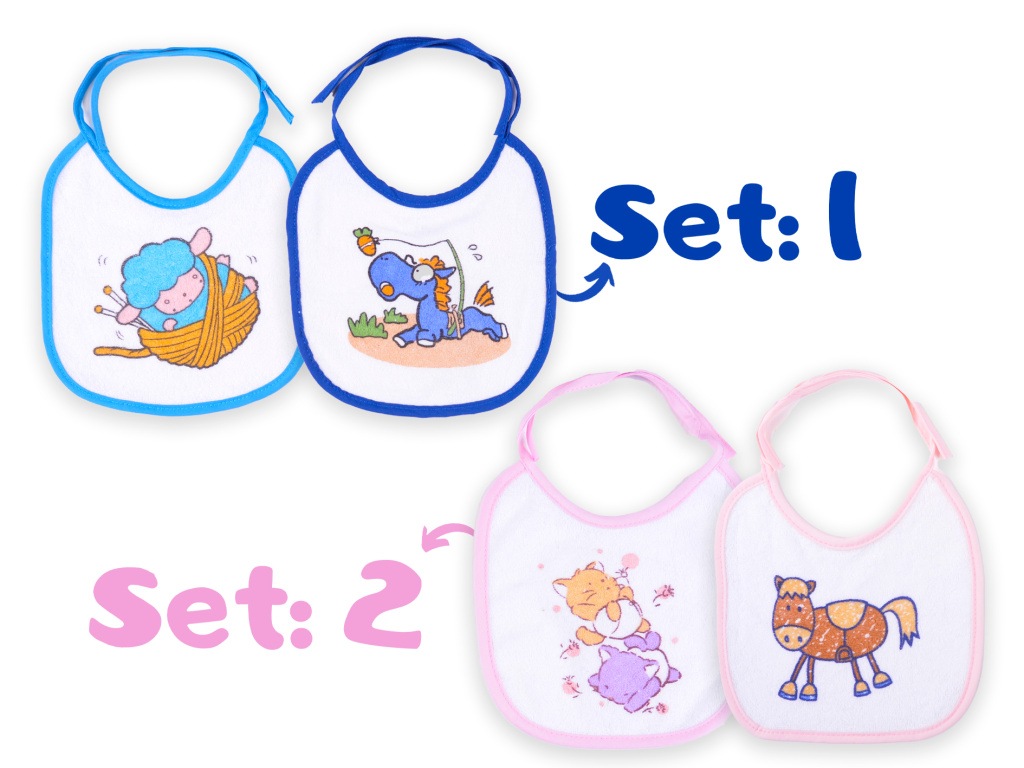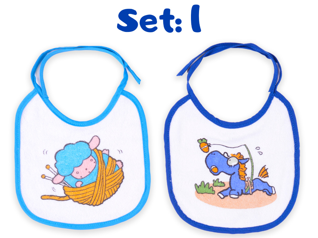 Každý set obsahuje 2 ks bryndáků s roztomilými obrázky, které si vaše miminko zamiluje.