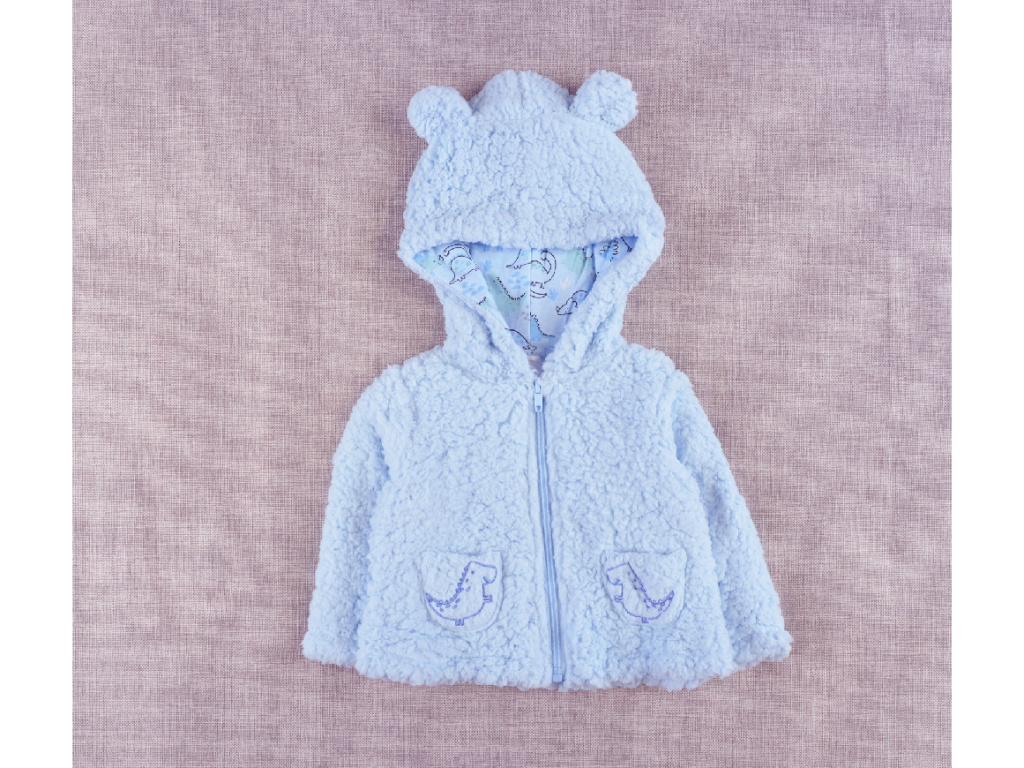 Kabátek má roztomilou kapuci s oušky.