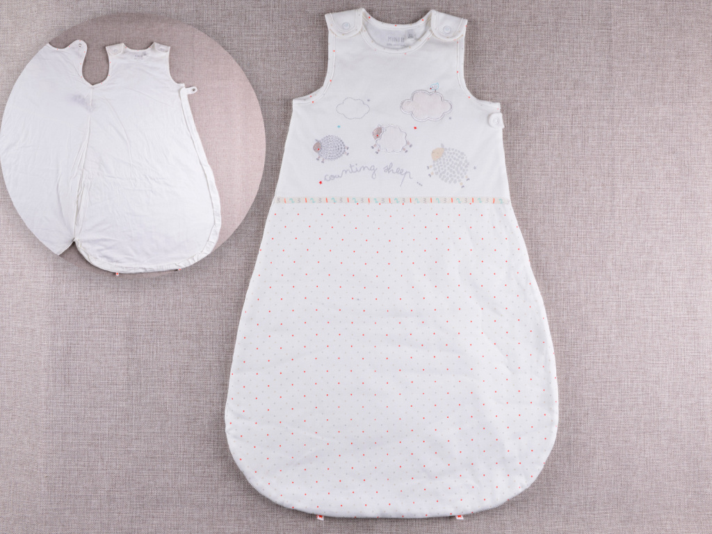 Velkou výhodou je celootvírací provedení – zip vede kolem celého spodního obvodu, díky čemuž je přebalování i večerní oblékání rychlé a pohodlné. Patentky na ramenou umožní snadné oblékání přes hlavičku.