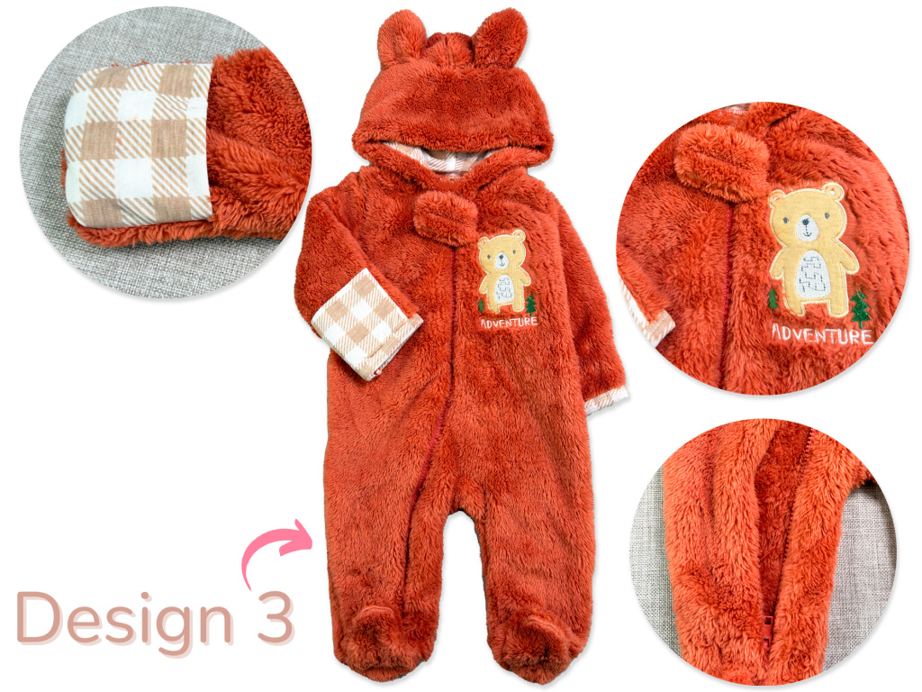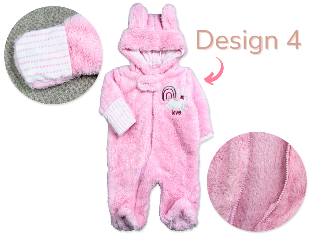 Plyšový detský overal s preťahovacími rukávmi (rukavičky) a bavlnenou podšívkou kapucne