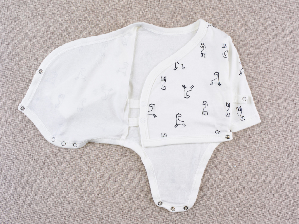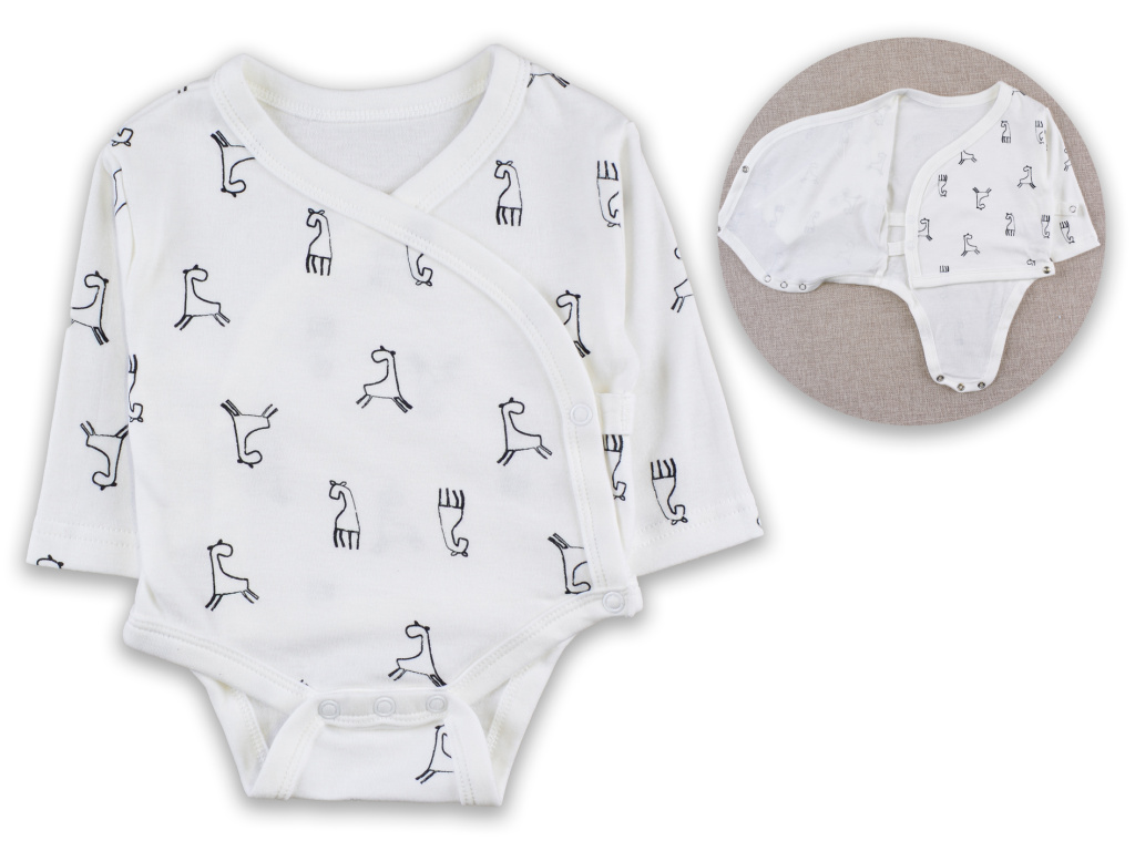 Pohodlné dětské body z měkké bavlny s praktickým zavinovacím zapínáním. Snadné oblékání, ideální pro citlivou pokožku miminka. 100% Bavlna.